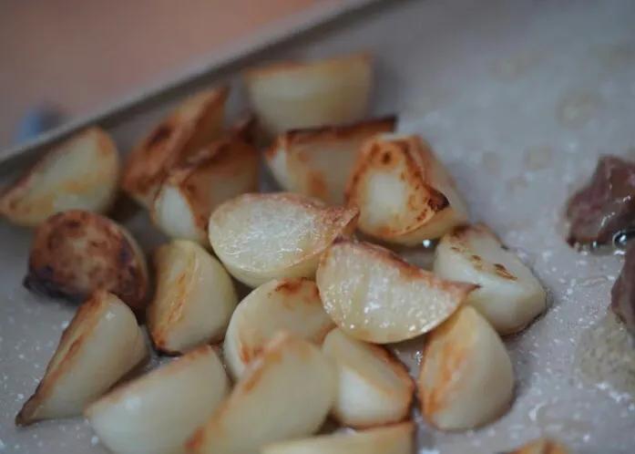 3.紫皮獨蒜5顆去皮,一切為4。