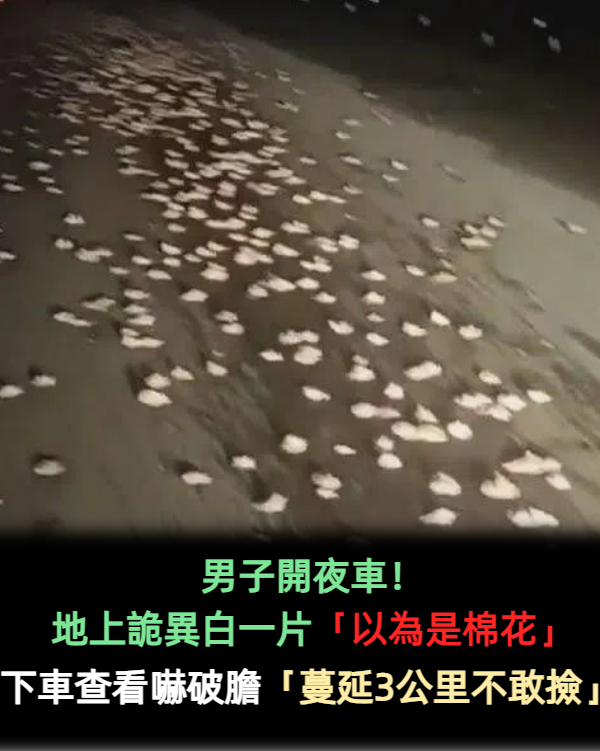 超詭異!男子開夜車發現地上白花花一片「以為是棉花」 下車查看被嚇破膽:撒了3公里,不敢撿 小蜻蜓 2026-03-02 檢舉 孔先生表示,一路走下來有3公里長的距離,都是散落的雞屁股,而且有些已經被過往車輛碾爛。孔先生說,當時他並未報警,次日,再去事發地查看,路上已無雞屁股。當晚與孔先生同行的魏先生猜測,可能是運輸雞屁股的貨車車廂開了,散落了一路。「我們當地並不吃雞屁股,有可能是拉去做飼料的。」魏先生說。隨後,記者根據孔先生所說地點,聯繫當地相關部門,工作人員均表示未聽說類似事情。文章來源:網易 Advertisements 回首頁 2/2 Advertisements 編輯精選推薦 More + 快訊/市場驚傳「鏟車亂輾人」嚴重死傷曝光 台灣人一致認同!國旅「最不想去縣市」第一名出爐 價錢過高「現場又很落漆」:不值得 當年搭檔徐若瑄!50歲偶像始祖「驚喜懷雙胞胎」 合照張小燕「狀態有如少女」 快訊/台中市長初選「結果出爐」!姐弟之爭落幕 驚現「死亡凶兆」!命理師預言:柯文哲「這年前難脫身」重生時間曝光 震撼演藝圈!30歲女星癱軟「身體不適求救」 救護員「伸狼爪還拍照」監視器全錄下場慘了 相信柯文哲是清白的嗎?民調結果「一面倒」令人震驚 「鄭習會」4月7號登場!他揭「中共3大要求」:斷了國民黨的路 又爆新戀情!74歲王文洋「交往20歲女大生」 女方「清秀長相曝光」已見家人 女神崩壞?林依晨最新亮相挨酸「斷崖式衰老」 43歲「皺紋爬滿臉+肌肉下垂」網友全嚇壞 擦1次窗28元!窮街友「想湊4000元買眼鏡」 挨家挨戶求打工「超商店員一聽突伸手」百萬網友看哭 北檢續追5大案!柯文哲「最快入獄時間」曝光 全球「最安全航空」2026榜單曝!台灣這航空「奪下第8名」唯一擠進前十 事業風光情路坎坷!77歲女神「渣夫出軌還求復合」 她單身至今「被偶遇驚天一幕」:根本反人類 徒手爬101惹議!知名大咖「挑戰爬62樓」畫面曝光 剛做完3動作「下秒墜樓身亡」 快訊/知名台灣大廠「股票恐成壁紙」!最嚴重恐下市 45歲離異當保姆!單身雇主「帶10歲女兒」神情不對勁 「我偷窺門縫」發現紙條嚇到雙腿發軟 吐司跳繩被切片!超卡哇依「食物用品擬人插畫」彷彿活過來 玉米筍燙頭髮「一看最後造型秒笑歪」❤️ 快訊/飛機驚傳「撞山墜毀」全數罹難! 台灣知名銀行「599億賣掉了」!退出台股股市 準媽媽「讓2萬隻蜜蜂爬滿孕肚」拍獨特孕婦寫真!預產期前6天「寶寶卻不動了」:只被螫3次... 最新/3度中風送醫!資深男星爆離婚「斷50年髮妻」 「砸1億淨身出戶」家族爆紛爭 85歲失智父身亡!林葉亭突宣布「皈依佛門」 遇大師「開示一番話」忍不住淚崩 台灣知名老街沒落?店家「7點全關門」客感嘆:失去靈魂 網曝殘酷原因 泡澡還能賞夕陽!沙灘旁「浪漫窗戶海景房」寧靜又愜意 海浪起伏「宛如巨型畫框」躺一整天也不膩❤️